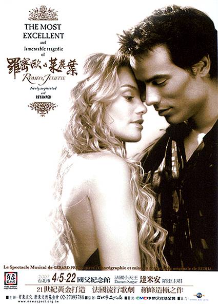 打從去年《歌劇魅影》演出接近尾聲的時候,就已經知道《羅密歐與茱麗葉》將會引進來台演出的消息。但當時的我並不以為意,心裡想說這還不就是個愛情大悲劇,會有啥看頭?而且過去有關它的電影與各式戲劇也已經發表過不少,算是老掉牙的故事了,怎麼還有人想要改編成音樂劇?算 …… 算了 …… 總之一句話就是.沒.錢.看.(也沒興趣)啦!