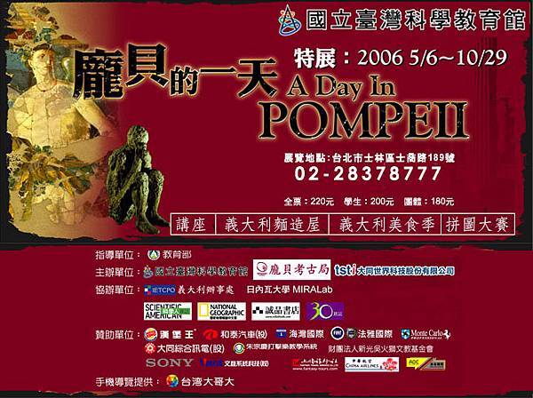 「龐貝的一天」展出時間是五月六日到十月二十九日,地點在士林士商路的台灣科學教育館。我在開展的第二天就和朋友去看了。